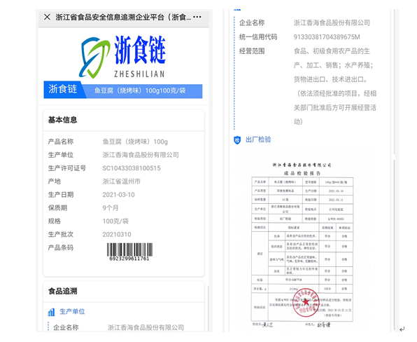 “浙食链”系统以生产(流通)源头管控为起点,全面整合和联通食品安全“信息孤岛”。在浙江,消费者只要扫一扫产品包装上的“浙食链”溯源码,便能了解商品出厂检验情况、监督抽检结果和合格证明、消毒证明等信息。自3月15日上线运行以来,上链食品生产经营主体已达到3377家。