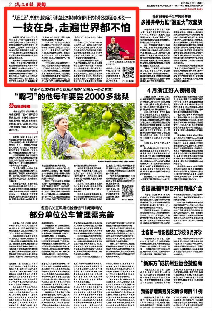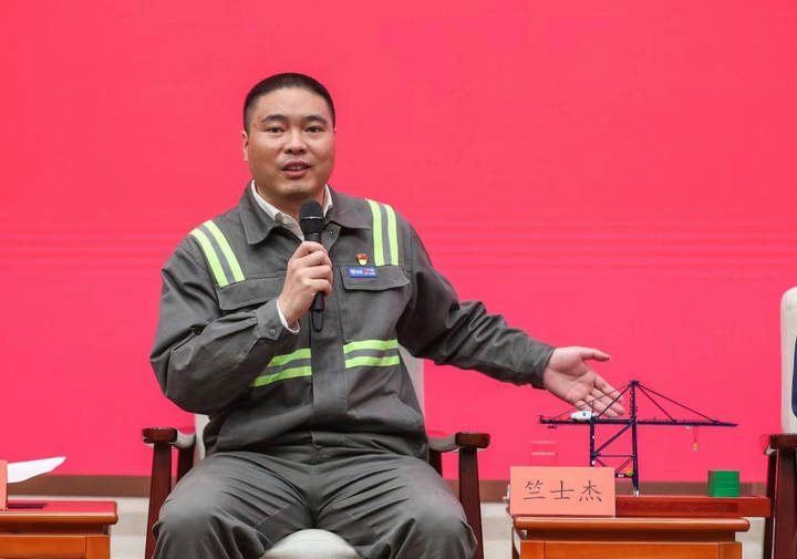 浙江新闻客户端 4月29日上午,中共中央宣传部举行中外记者见面会,5位新时期工人党员代表围绕“弘扬劳模精神、劳动精神、工匠精神”与中外记者见面,讲述各自精彩的奋斗故事。其中一位,就是浙江省海港集团宁波北仑第三集装箱码头有限公司桥吊班大班长竺士杰。