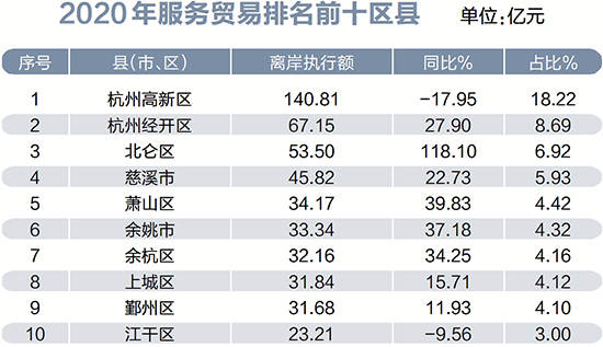 “这两年浙江服务贸易的产业不断优化,面对疫情它们的抗风险能力更加凸显。”张钱江分析,2020年,浙江的电信、计算机和信息服务进出口占比已经由2016年的18.31%提升至30.80%,跃居全省服务贸易第一大行业类型。另一方面,从前几年的增长势头来看,浙江服务贸易已经到了一个突破瓶颈的关键期——2019年,浙江的服务贸易就已经基本到达了进出口平衡的一个拐点,出口总额仅比进口总额少了几十亿元。“所以说,即便没有疫情影响,浙江服贸也一样能在2020年实现顺差。”