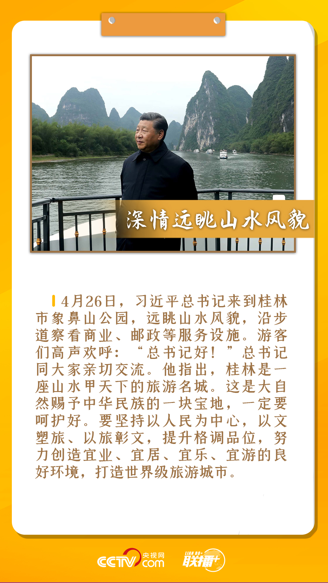 联播+ 4月25日至27日,习近平总书记先后来到广西桂林、柳州、南宁等地,就贯彻党的十九届五中全会精神、开展党史学习教育、推动“十四五”开好局起好步等进行调研。