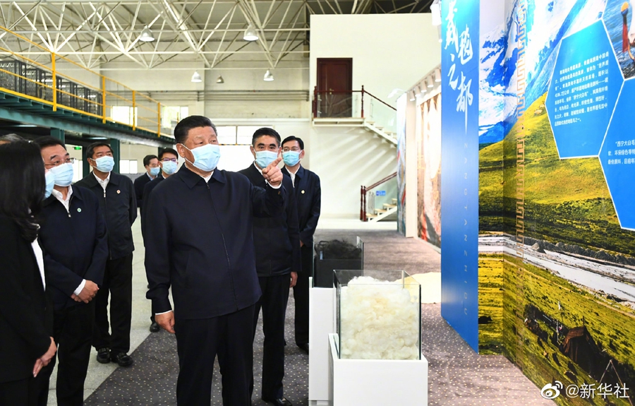 6月7日,习近平总书记赴青海考察调研。当天下午,他来到位于西宁市的青海圣源地毯集团有限公司,了解企业依托当地原材料资源优势,创新设计理念,提升产品竞争力,带动群众就业增收等情况。随后,习近平来到文汇路街道文亭巷社区,考察社区加强基层党建、完善基层治理、推进民族团结进步等情况。