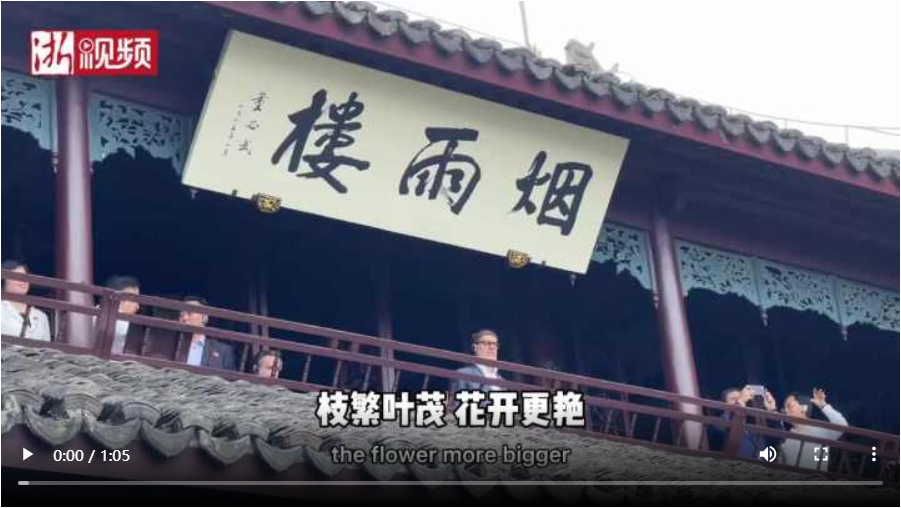 大使们的第一站是中国革命红船起航地嘉兴南湖。驻华使节们乘船登上湖心岛,在红船边聆听中国共产党诞生的故事,在烟雨楼远眺浩浩南湖,感受江南美景。