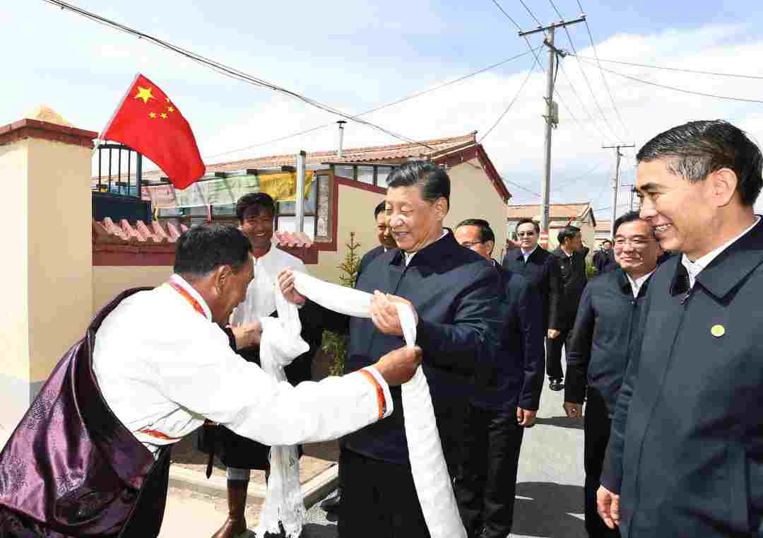 8日下午,正在青海考察的习近平总书记来到果洛藏贡麻村,看望慰问藏族群众,走进藏族群众家中了解生产生活情况。