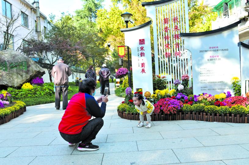 近日,我区在紫阳街道古树公园(江城路401号)举办以“秋来探古树·菊香传宋韵”为主题的菊花展,共展出2000余盆上万朵菊花,共200余个菊花品种。其中国内自主育种的新品种有艳山红霞、江海明珠等;国外引进的品种有宝辛唐锦、贺寿等;传统品种有白毛刺、黄石公等。整个公园分为入口迎宾区、古树花境区、宋韵文化展区、菊花精品展区四个区域,一步一景,美景不断。