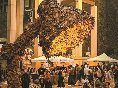 巨型落叶台灯被点亮 南山路上一年一度的浪漫回归